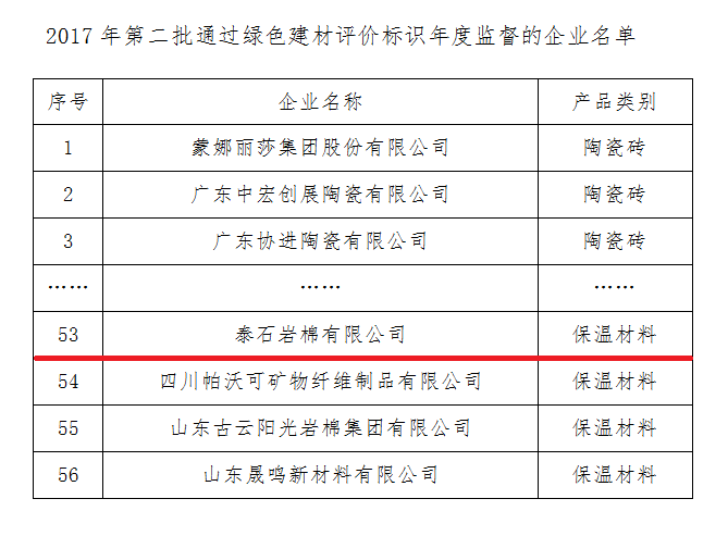 按照質(zhì)檢總局、住房城鄉(xiāng)建設(shè)部、工業(yè)和信息化部、國家認(rèn)監(jiān)委和國家標(biāo)準(zhǔn)委聯(lián)合發(fā)布《關(guān)于推動綠色建材產(chǎn)品標(biāo)準(zhǔn)、認(rèn)證、標(biāo)識工作的指導(dǎo)意見》(國質(zhì)檢認(rèn)聯(lián)〔2017〕544號)文件,已獲得三星級綠色建材評價(jià)標(biāo)識的建材產(chǎn)品在證書有效期內(nèi)可換發(fā)綠色產(chǎn)品認(rèn)證證書,泰石巖棉有望成為首批獲得綠色產(chǎn)品認(rèn)證企業(yè)。公司將在綠色建材行業(yè)發(fā)展中,繼續(xù)引領(lǐng)技術(shù)創(chuàng)新,充分發(fā)揮綠色建材評價(jià)標(biāo)識的市場作用,促進(jìn)綠色建材的全面推廣。
